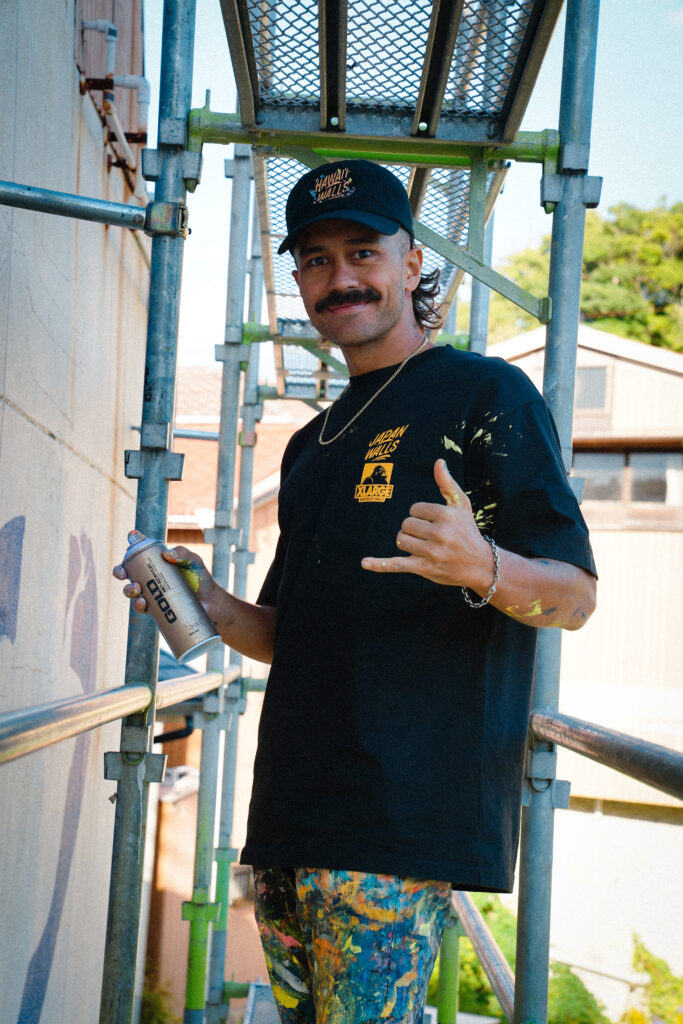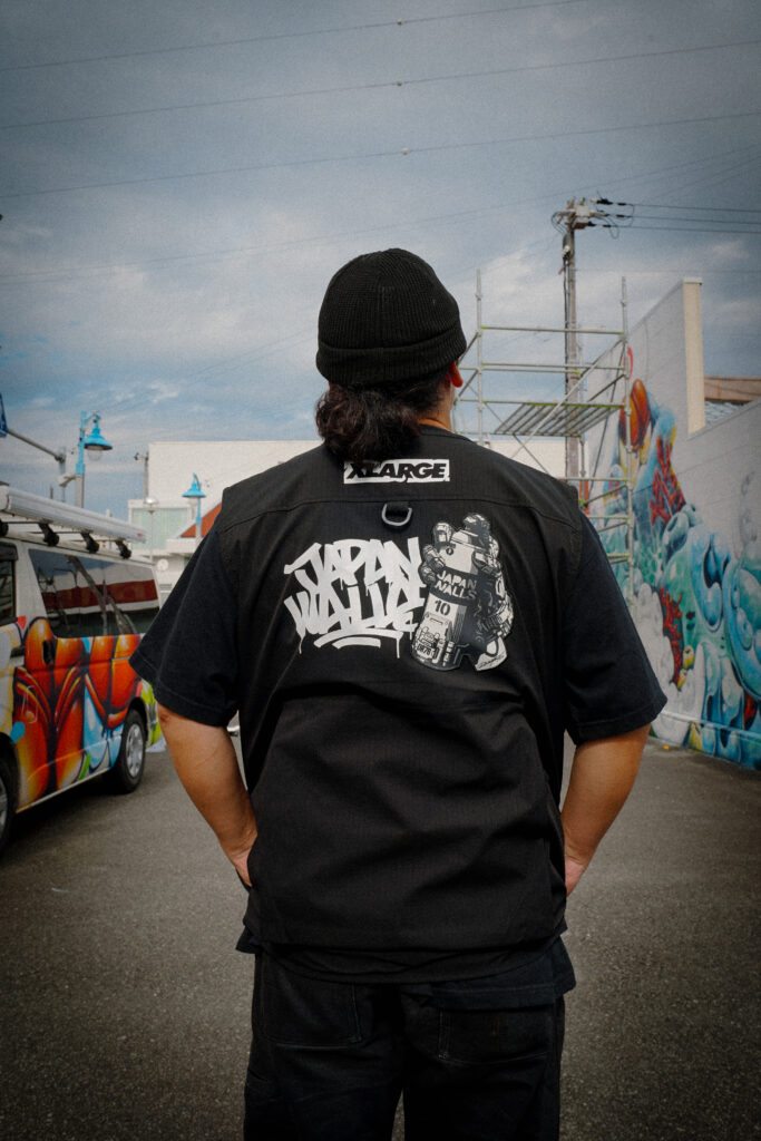 世界的アートプロジェクト「WORLD WIDE WALLS」の日本開催「JAPAN WALLS」は創立10周年。2025年は、白浜とワイキキの姉妹浜提携25周年、そして白浜開催5周年が重なる特別な年となります。この節目を記念して、XLARGEはDRAGON76を迎え、JAPAN WALLSとのトリプルコラボレーションアイテムを販売。アーティストのための実用的なアイテムとして、スプレー缶の収納ポケットを備えたベストとジャケット、Tシャツをイベントユニフォームとして提供し、ミューラル制作の活動サポートを行いました。